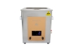 通過換能器,將功率超聲頻源的聲能轉換成機械振動,通過清洗槽壁將超聲波輻射到槽子中的清洗液。由于受到超聲波的輻射,槽內液體中的微氣泡能夠在聲波的作用下快速變大破裂,破裂時產生的高強度剪切力作用于各類樣品上,從而達到清洗、提取、乳化、加速溶解、粉碎、分散等作用。